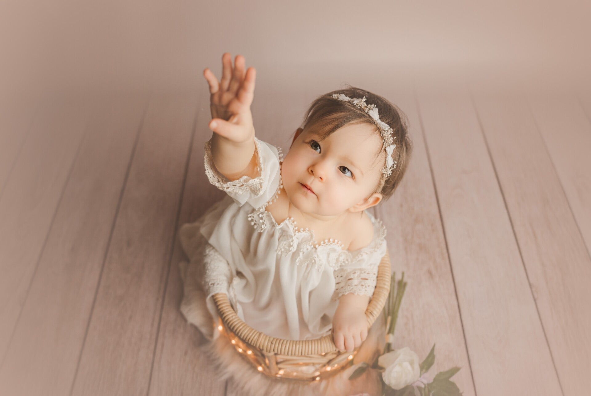 Cette séance peut avoir lieu à partir du moment où votre bébé tiens seul assis (environ 6mois) puis il est aussi possible de fêter ses 1 an autour d'une séance Smash Cake.